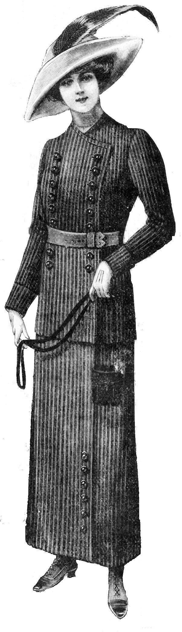 A few weeks ago I ran across some information for a very interesting sewing project called the The 1912 Project: Sewing the La Mode. This website is dedicated to test sewing and producing for public use a series of period clothing patterns taken from the 1912 issues of La Mode Illustrée, which was one of the premier fashion magazines of its era. 1912 was particularly chosen by the project founders to commemorate the 100 year anniversary of the sinking of the Titanic on April 15, 1912. These are the same the folks who run the Vintage Pattern Lending Library, a wonderful repository of vintage patterns available for checkout to the public for a modest fee; if you love to sew and love vintage/historical, and have never been to the VPLL, I highly suggest a visit. In any case, I felt some new enthusiasm for taking on another costuming project after reading about the group, so I contacted these folks to become involved. Well, things went from here to there, and now suddenly I discover myself to not only be sewing test patterns, but also to be one of a small group of Blog Editors for the site. One of my first tasks has been to create a set of paper dolls and blog badges based on the patterns being tested by site participants. I plan to start with the picture below, which is one of the test patterns currently available to project participants, as a base for the drawing of the female doll. I think she already has a PERFECT paper doll pose and not only that, she is a very sweet and attractive representation of the period. As I progress with the doll artwork, I will post updates to this blog.